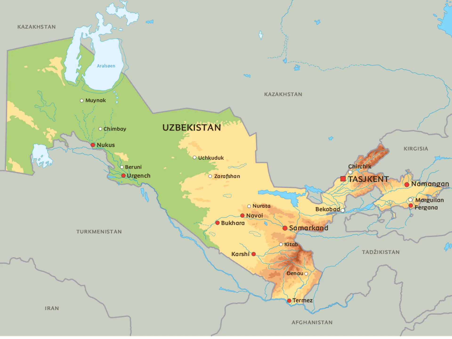 Avaa kartta uuteen ikkunaan – Uzbekistanin kartta