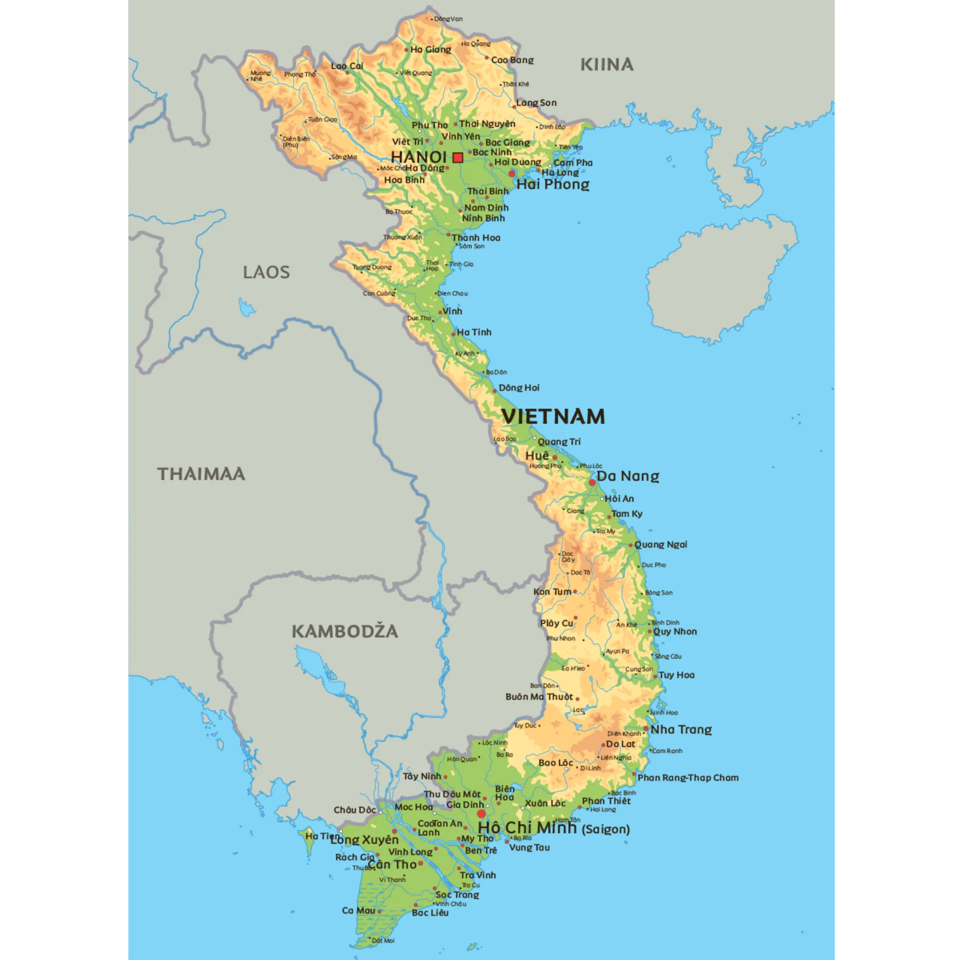 Alla on Vietnamin kartta. Voit tutustua Saigoniin/Ho Chi Minh Cityyn ja Mekongin jokeen etelässä, pääkaupunki Hanoihin ja kauniiseen Halongin lahteen pohjoisessa. Tutustu kaupunkeihin kuten Da Nang, Hai Phong ja Dong Hoi, jotka esittelevät Vietnamille ominaista luontoa, kulttuuria ja historiaa. Joten missä sijaitsee pääkaupunki Hanoi? Katso se kartalta.