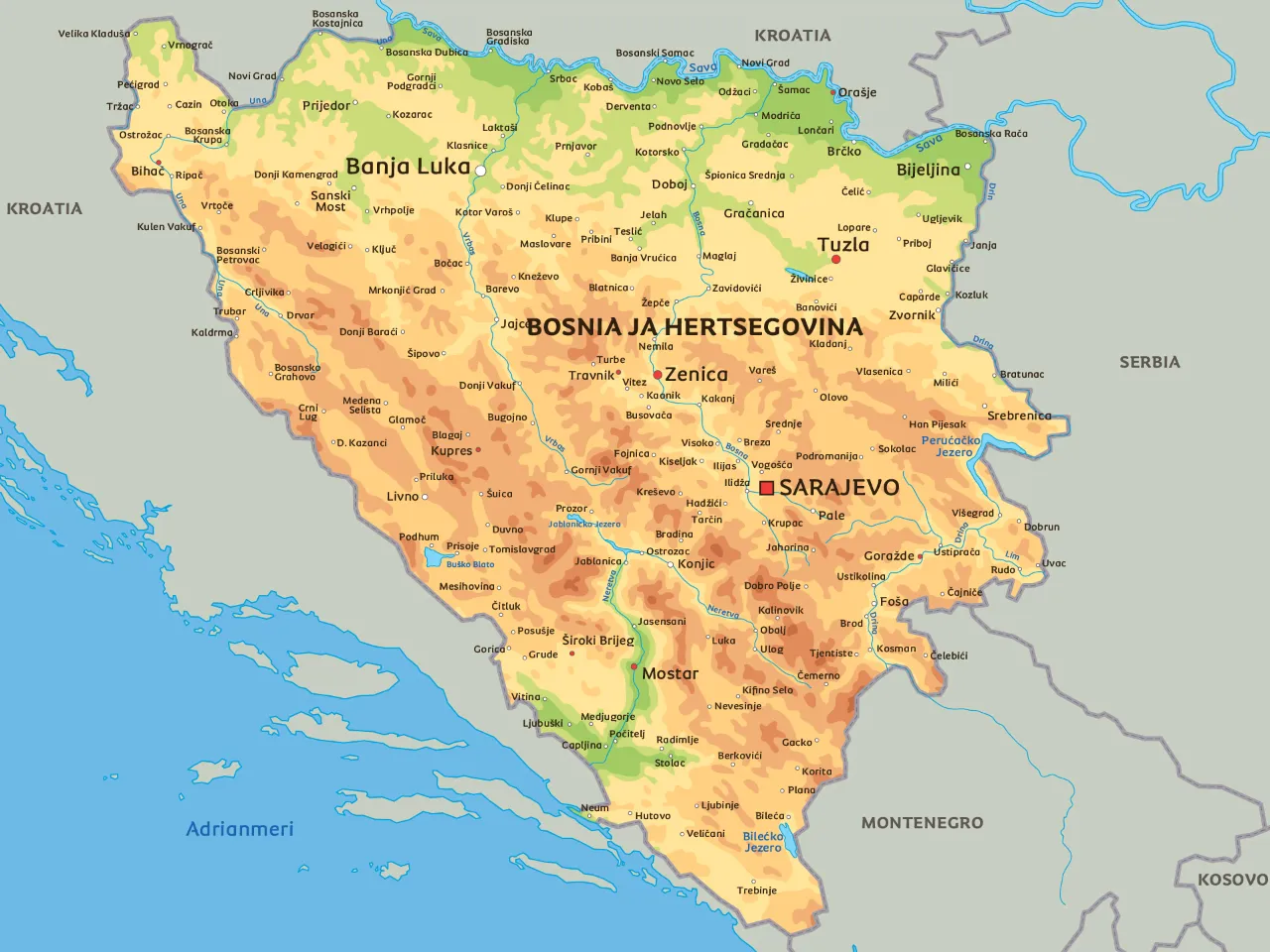 Alla voit nähdä kartan Bosnia ja Hertsegovinasta. Aloita tutustuminen tähän kauniiseen Balkanin niemimaan maahan ja näe muun muassa pääkaupungin Sarajevon sijainti sekä Mostar, jossa on UNESCOn suojelema vanha kaupunki. Katso myös, missä sijaitsee Tuzla, tunnettu suolakaivoksistaan, tai kaupungit Zenica ja Banja Luka, jotka vievät sinut läpi maan upean luonnon. Missä siis voit löytää pääkaupungin Sarajevon? Katso se kartalta.