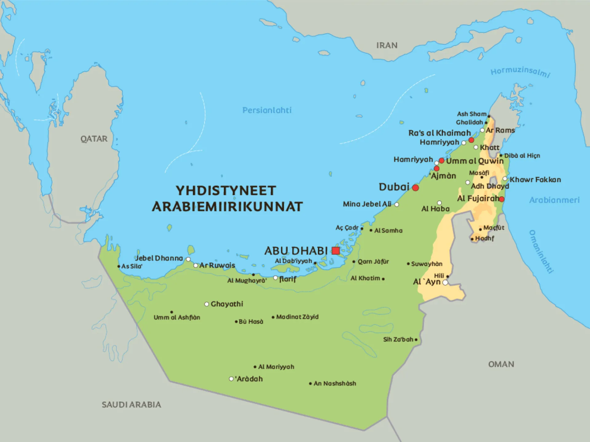 Avaa kartta uuteen ikkunaan – Yhdistyneiden arabiemiirikuntien kartta